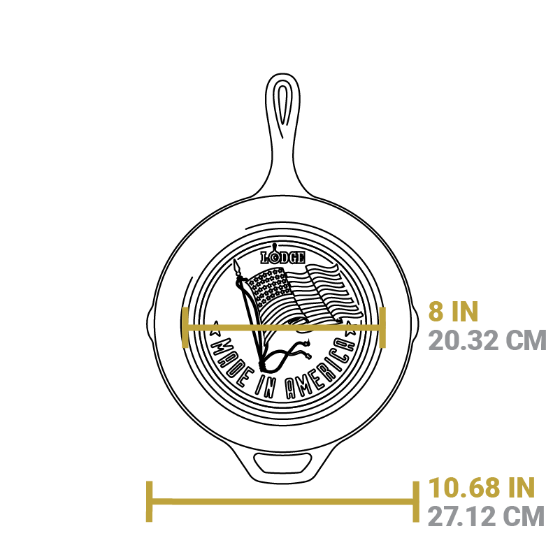 This American-made skillet comes with a special flag design??updated from our 2018 Made In America? collector’s skillet. Cast iron provides great heat retention and the naturally seasoned cooking surface is ready to go. straight from the foundry. so you start cooking right away. Celebrate the red. white. and blue!?