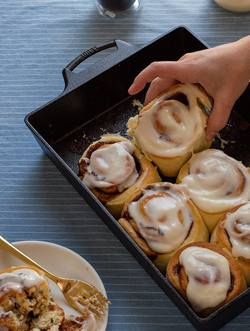 Cast iron is a baker’s best friend. That’s because cast iron bakeware won’t dent. bend. or warp at high temperatures. so you can keep perfecting your cinnamon rolls. The naturally seasoned cooking surface is ready to go. straight from the foundry. And great heat retention helps you get perfect bakes every single time. That’s a recipe for a good morning!?
