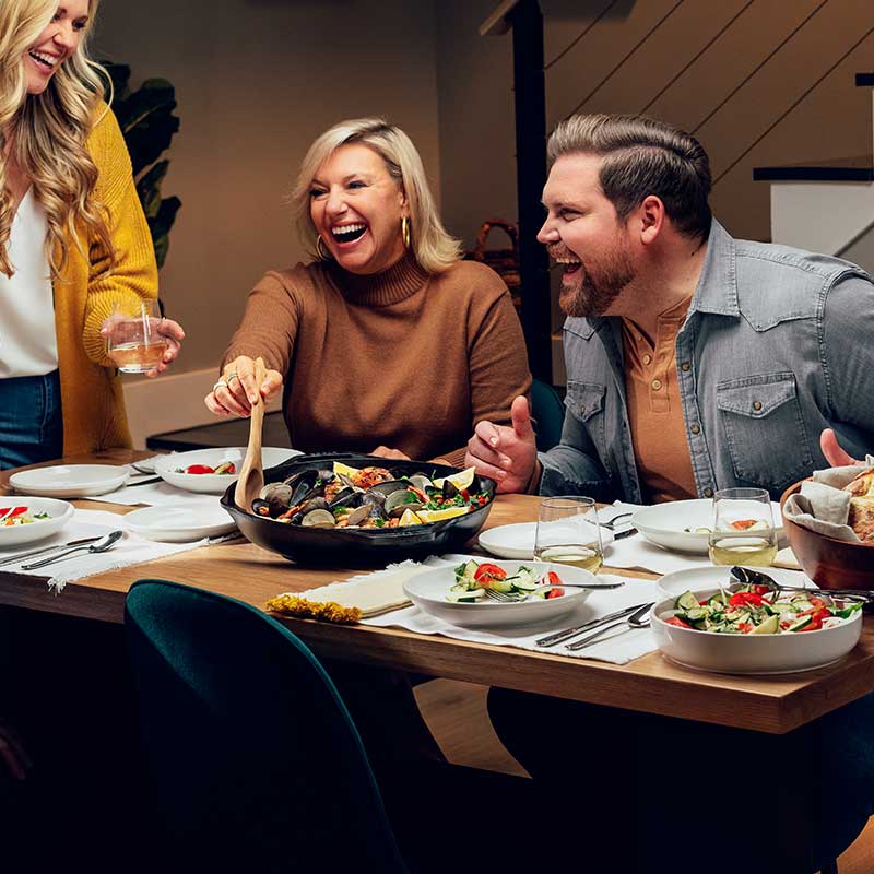 This chef-inspired pan features supportive dual handles and spatula-friendly sidewalls. so you can experiment in the kitchen like a pro. Cast iron provides unparalleled heat retention and a naturally seasoned cooking surface. so you can get straight to cooking. Dinner is served!?