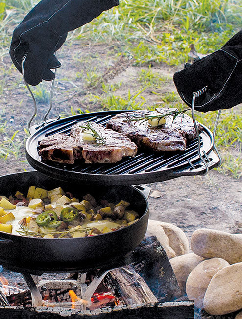 This 2-handle set keeps hands away from hot cookware or campfires while providing a secure grip for great control. Perfect for use with the Cook-It-All. the Fish Pan. and other dual handle pans.