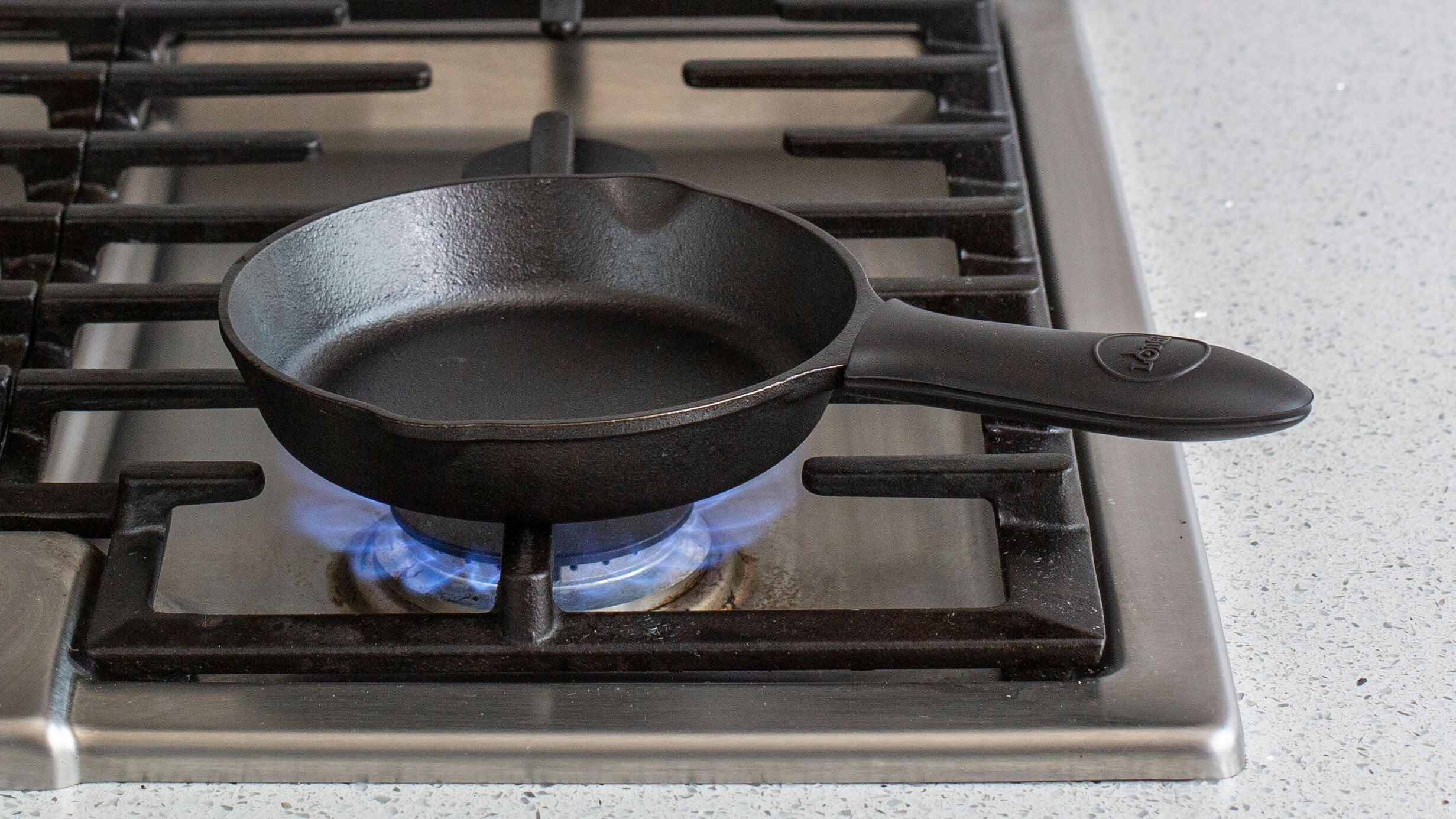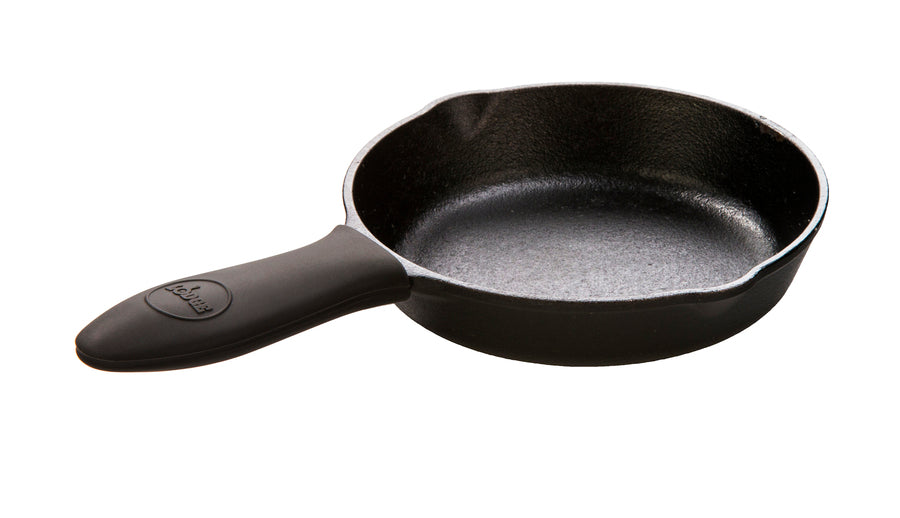 High temperature cooking? Don’t sweat it. A great piece of cast iron cookware gets hot. but this colorful silicone hot handle holder keeps your hands safe up to 450?? F. The mini silicone handle holder is designed to fit snuggly on Lodge classic cast iron skillets. 8 inches and smaller.